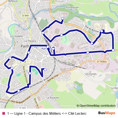 Bus 1 - Ligne 1 - Campus des Métiers <-> Cité Leclerc Schedule in Parthenay