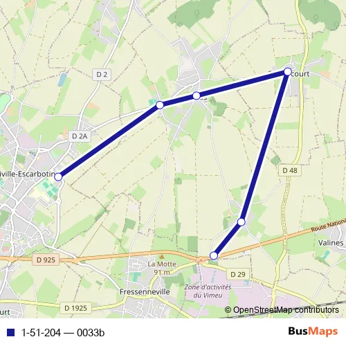 The first stop of the 1-51-204 bus route is Friville-Escarbotin - Collège La Rose des Vents and the last stop is Nibas - Petit Saucourt. 1-51-204 (0033b) is operational during todos los días.