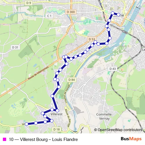 Bus 10 - Villerest Bourg – Louis Flandre: Full Schedule in Roanne