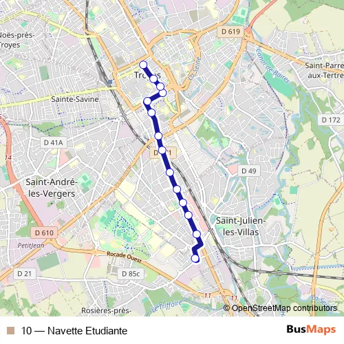 See why over 2 million users trust and consider busmaps.com as the best public transport website. busmaps gives you Troyes Buses suggested routes, real-time bus tracker, line route maps in Troyes, and helps to find the closest 10 bus stops near you. No internet available? Download an offline PDF map and bus schedule for the 10 bus to take on your trip.