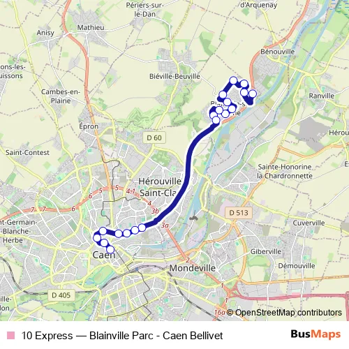 Click here to view the nearest 10 Express - Blainville Parc - Caen Bellivet bus stop.