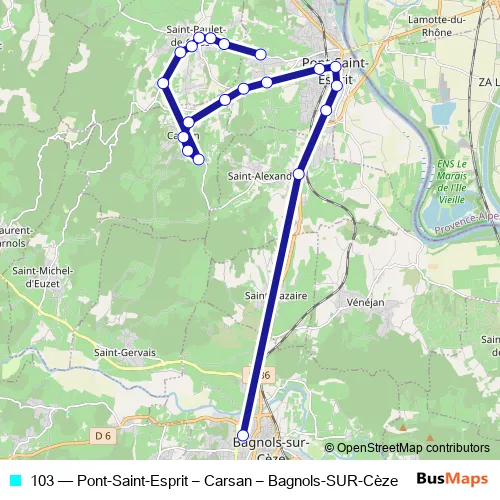 Click here to view the nearest 103 - Pont-Saint-Esprit – Carsan – Bagnols-SUR-Cèze bus stop.
