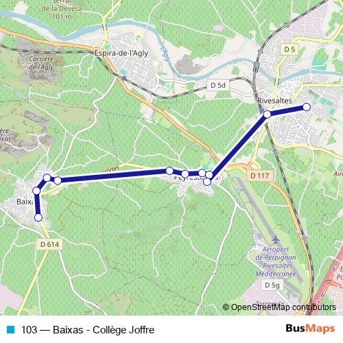 Bus 103 - Baixas - Collège Joffre in Peyrestortes: Stops & Timetable