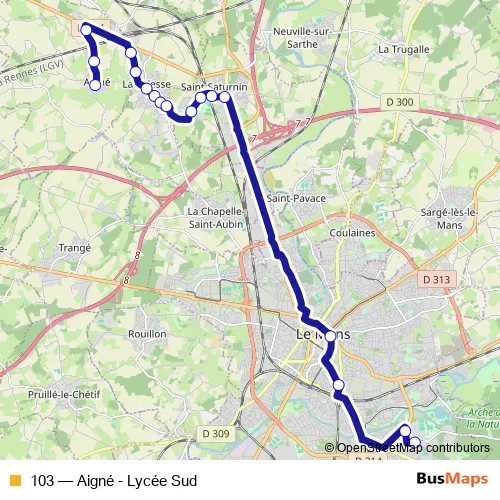 Bus 103 - Aigné - Lycée Sud Schedule in Le Mans