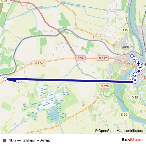 See why over 2 million users trust and consider busmaps.com as the best public transport website. busmaps gives you Arles Buses suggested routes, real-time bus tracker, line route maps in Arles, and helps to find the closest 105 bus stops near you. No internet available? Download an offline PDF map and bus schedule for the 105 bus to take on your trip.