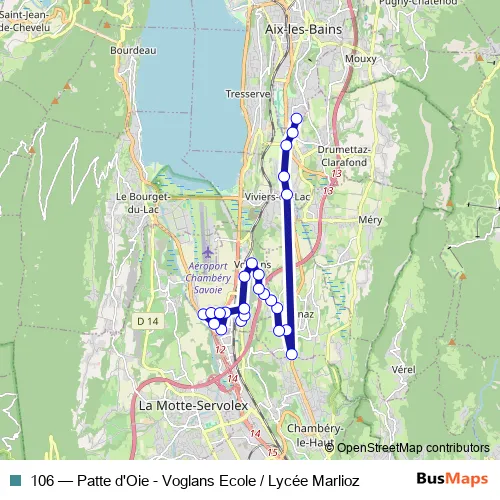 Click here to view the nearest 106 - Patte d'Oie - Voglans Ecole / Lycée Marlioz bus stop.