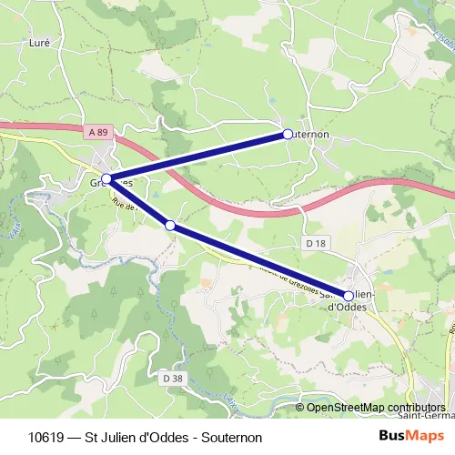 Click here to view the nearest 10619 - St Julien d'Oddes - Souternon bus stop.
