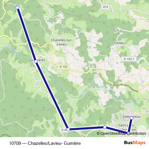 Click here to view the nearest 10709 - Chazelles/Lavieu- Gumière bus stop.