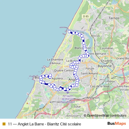 Bus 11 - Anglet La Barre - Biarritz Cité scolaire: Full Schedule in Bayonne
