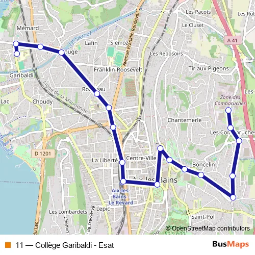 See why over 2 million users trust and consider busmaps.com as the best public transport website. busmaps gives you Aix-les-Bains Buses suggested routes, real-time bus tracker, line route maps in Aix-les-Bains, and helps to find the closest 11 bus stops near you. No internet available? Download an offline PDF map and bus schedule for the 11 bus to take on your trip.