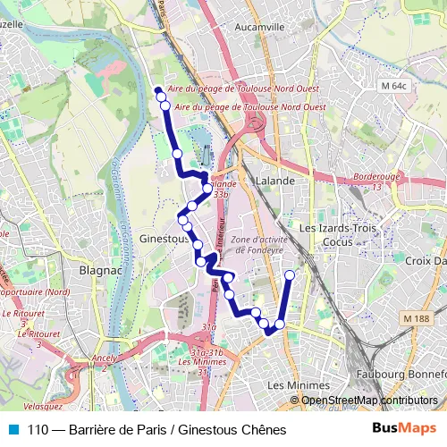See why over 2 million users trust and consider busmaps.com as the best public transport website. busmaps gives you Toulouse Buses suggested routes, real-time bus tracker, line route maps in Toulouse, and helps to find the closest 110 bus stops near you. No internet available? Download an offline PDF map and bus schedule for the 110 bus to take on your trip.