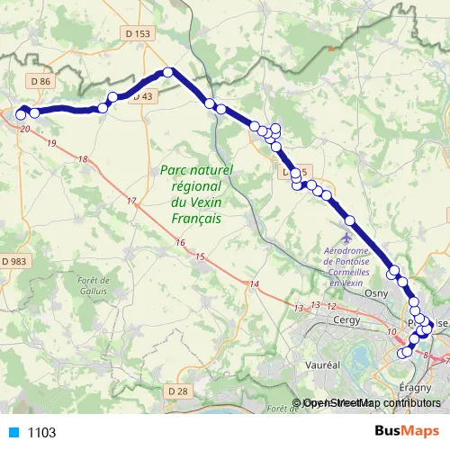 Bus 1103 in Pontoise: Stops & Timetable