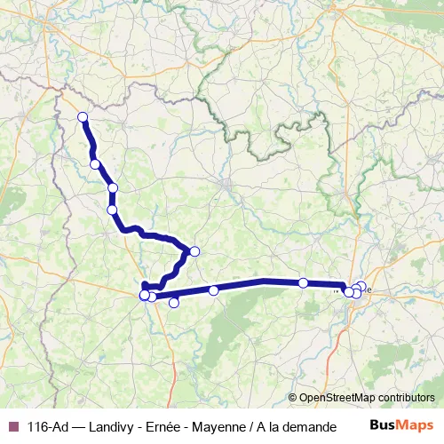 Click here to view the nearest 116-Ad - Landivy - Ernée - Mayenne / A la demande bus stop.