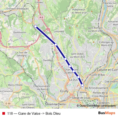 118 (Gare de Vaise -> Bois Dieu) Bus in Lyon