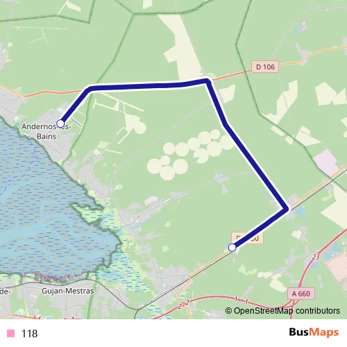 See why over 2 million users trust and consider busmaps.com as the best public transport website. busmaps gives you Andernos-les-Bains Buses suggested routes, real-time bus tracker, line route maps in Andernos-les-Bains, and helps to find the closest 118 bus stops near you. No internet available? Download an offline PDF map and bus schedule for the 118 bus to take on your trip.