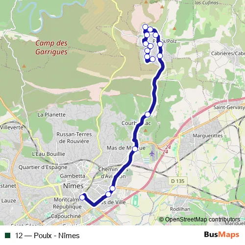 See why over 2 million users trust and consider busmaps.com as the best public transport website. busmaps gives you Poulx Buses suggested routes, real-time bus tracker, line route maps in Poulx, and helps to find the closest 12 bus stops near you. No internet available? Download an offline PDF map and bus schedule for the 12 bus to take on your trip.