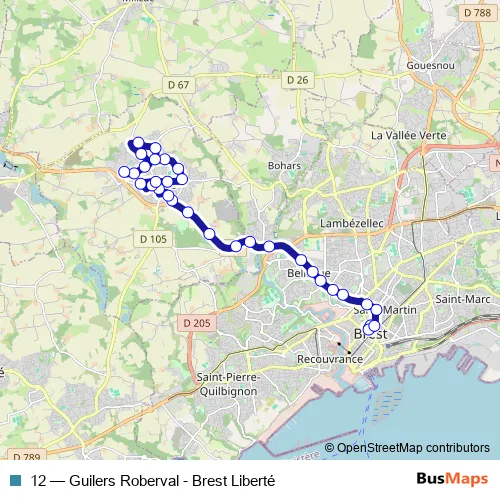 Bus 12 - Guilers Roberval - Brest Liberté in Guilers: Stops & Timetable