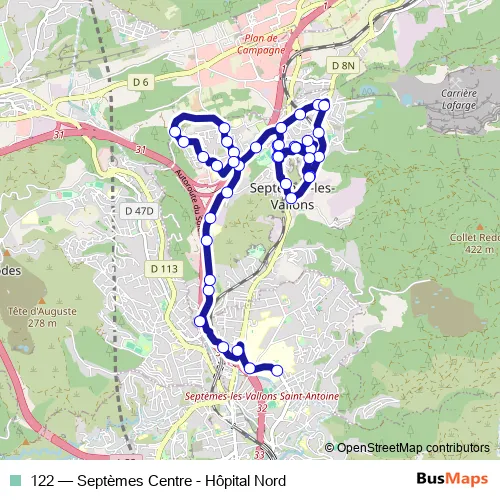 Bus 122 - Septèmes Centre - Hôpital Nord: Full Schedule in Marseille