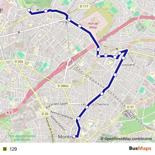Bus 129 in Bobigny: Stops & Timetable