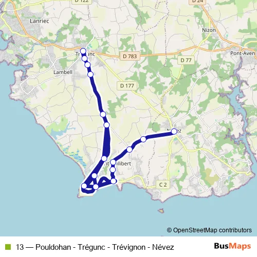 Click here to view the nearest 13 - Pouldohan - Trégunc - Trévignon - Névez bus stop.