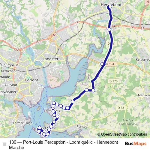 Bus 130 - Port-Louis Perception - Locmiquélic - Hennebont Marché: Full Schedule in Locmiquelic