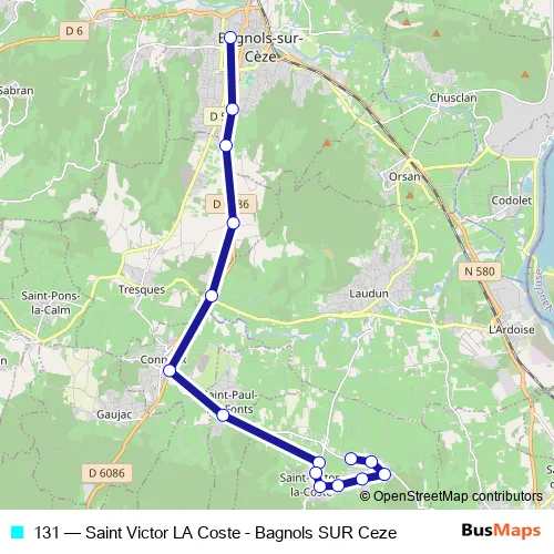 See why over 2 million users trust and consider busmaps.com as the best public transport website. busmaps gives you Saint-Victor-la-Coste Buses suggested routes, real-time bus tracker, line route maps in Saint-Victor-la-Coste, and helps to find the closest 131 bus stops near you. No internet available? Download an offline PDF map and bus schedule for the 131 bus to take on your trip.