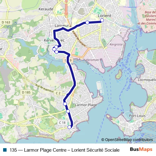 Click here to view the nearest 135 - Larmor Plage Centre – Lorient Sécurité Sociale bus stop.