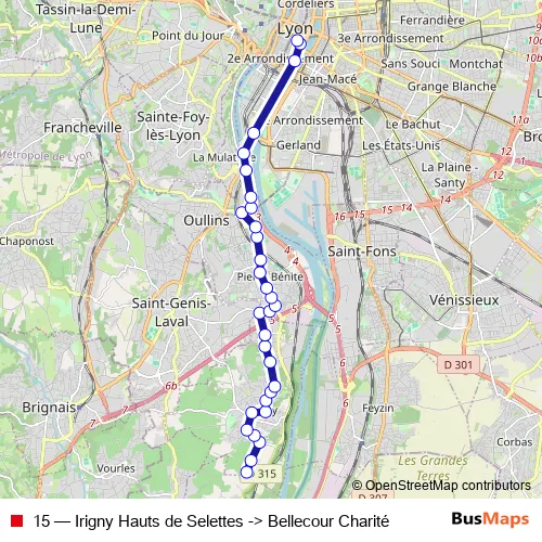 See why over 2 million users trust and consider busmaps.com as the best public transport website. busmaps gives you Lyon Buses suggested routes, real-time bus tracker, line route maps in Lyon, and helps to find the closest 15 bus stops near you. No internet available? Download an offline PDF map and bus schedule for the 15 bus to take on your trip.
