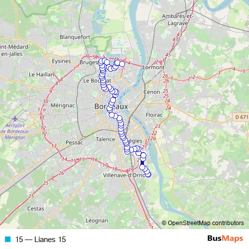 Bus 15 - Lianes 15 in Bordeaux: Stops & Timetable