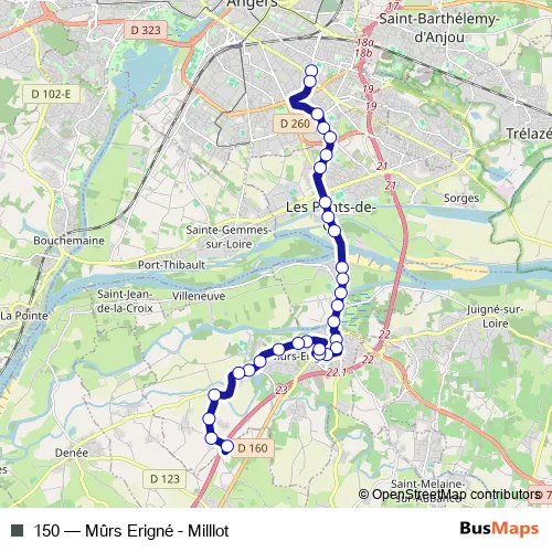 Bus 150 - Mûrs Erigné - Milllot Schedule in Angers