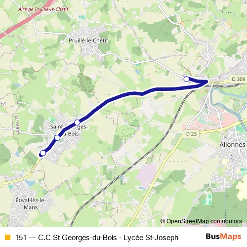 Bus 151 - C.C St Georges-du-Bois - Lycée St-Joseph in Saint-Georges-du-Bois: Stops & Timetable