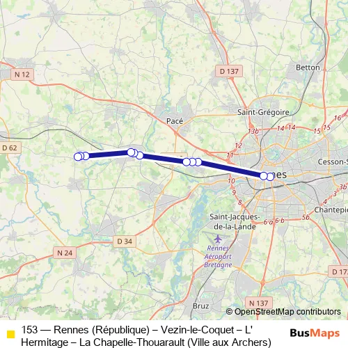 Click here to view the nearest 153 - Rennes (République) – Vezin-le-Coquet – L'Hermitage – La Chapelle-Thouarault (Ville aux Archers) bus stop.