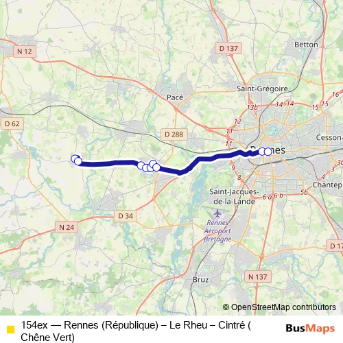 Click here to view the nearest 154ex - Rennes (République) – Le Rheu – Cintré (Chêne Vert) bus stop.