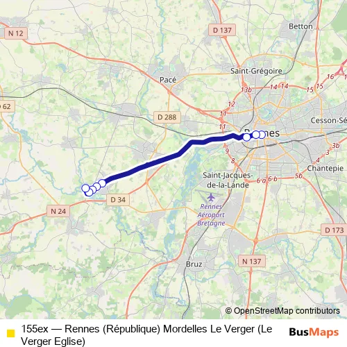Click here to view the nearest 155ex - Rennes (République) Mordelles Le Verger (Le Verger Eglise) bus stop.