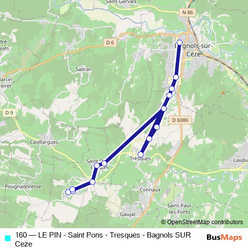 Click here to view the nearest 160 - LE PIN - Saint Pons - Tresques - Bagnols SUR Ceze bus stop.