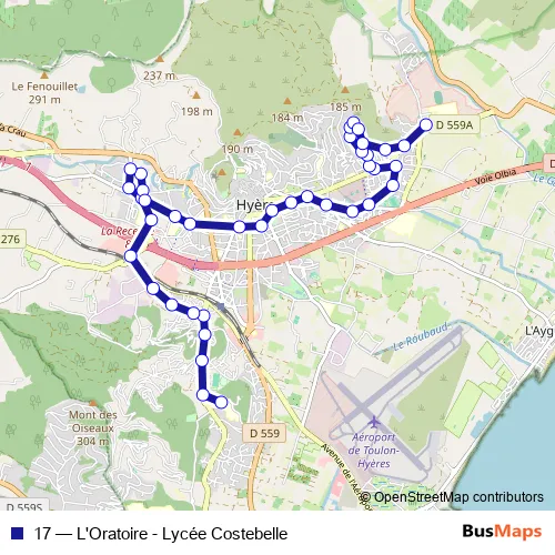 Bus 17 - L'Oratoire - Lycée Costebelle Schedule in Hyeres