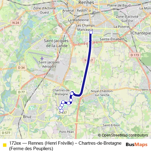 Click here to view the nearest 172ex - Rennes (Henri Fréville) – Chartres-de-Bretagne (Ferme des Peupliers) bus stop.