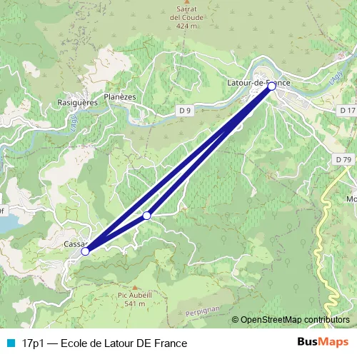See why over 2 million users trust and consider busmaps.com as the best public transport website. busmaps gives you Latour-de-France Buses suggested routes, real-time bus tracker, line route maps in Latour-de-France, and helps to find the closest 17p1 bus stops near you. No internet available? Download an offline PDF map and bus schedule for the 17p1 bus to take on your trip.