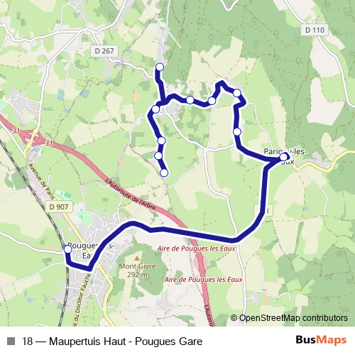 Click here to view the nearest 18 - Maupertuis Haut - Pougues Gare bus stop.