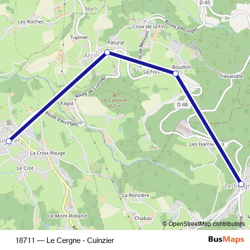 Bus 18711 - Le Cergne - Cuinzier in Cuinzier: Stops & Timetable
