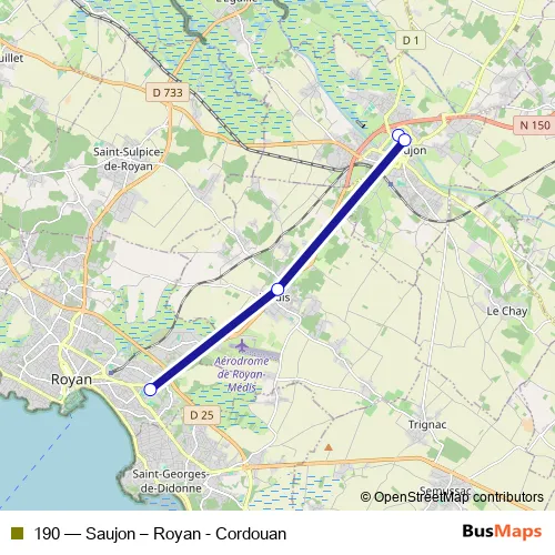 Click here to view the nearest 190 - Saujon – Royan - Cordouan bus stop.