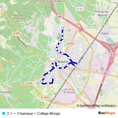 Bus 2.1 - Chazeaux > Collège Monge: Full Schedule in Beaune
