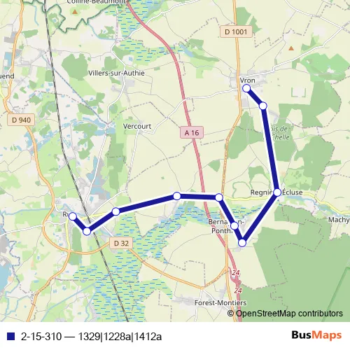 The first stop of the 2-15-310 bus route is RUE - Collège Ecole Notre Dame and the last stop is Vron - Haut. 2-15-310 (1329|1228a|1412a) is operational during todos los días.