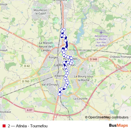 See why over 2 million users trust and consider busmaps.com as the best public transport website. busmaps gives you La Roche-sur-Yon Buses suggested routes, real-time bus tracker, line route maps in La Roche-sur-Yon, and helps to find the closest 2 bus stops near you. No internet available? Download an offline PDF map and bus schedule for the 2 bus to take on your trip.