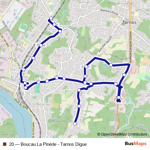 Bus 20 - Boucau La Pinède - Tarnos Digue: Full Schedule in Bayonne