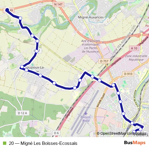 Bus 20 - Migné Les Boisses-Ecossais in Poitiers: Stops & Timetable