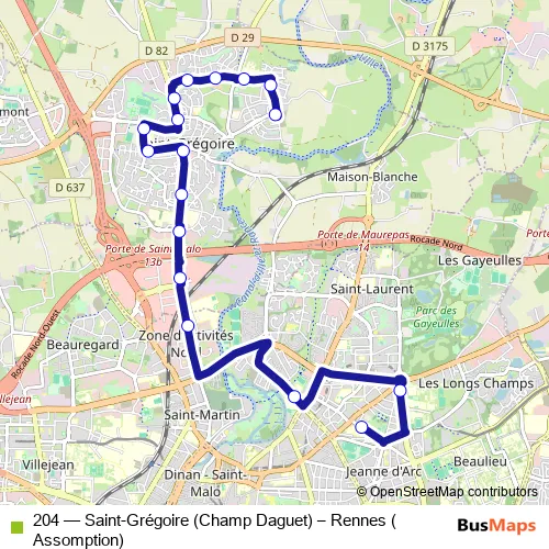 Click here to view the nearest 204 - Saint-Grégoire (Champ Daguet) – Rennes (Assomption) bus stop.