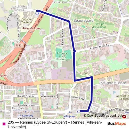 Click here to view the nearest 205 - Rennes (Lycée St-Exupéry) – Rennes (Villejean-Université) bus stop.