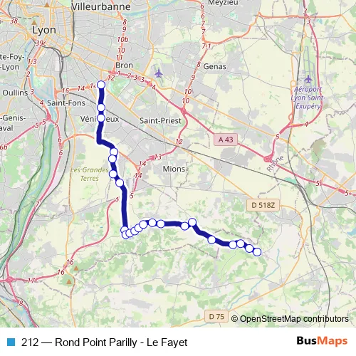 See why over 2 million users trust and consider busmaps.com as the best public transport website. busmaps gives you Lyon Buses suggested routes, real-time bus tracker, line route maps in Lyon, and helps to find the closest 212 bus stops near you. No internet available? Download an offline PDF map and bus schedule for the 212 bus to take on your trip.