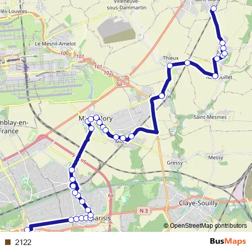 See why over 2 million users trust and consider busmaps.com as the best public transport website. busmaps gives you Villeparisis Buses suggested routes, real-time bus tracker, line route maps in Villeparisis, and helps to find the closest 2122 bus stops near you. No internet available? Download an offline PDF map and bus schedule for the 2122 bus to take on your trip.